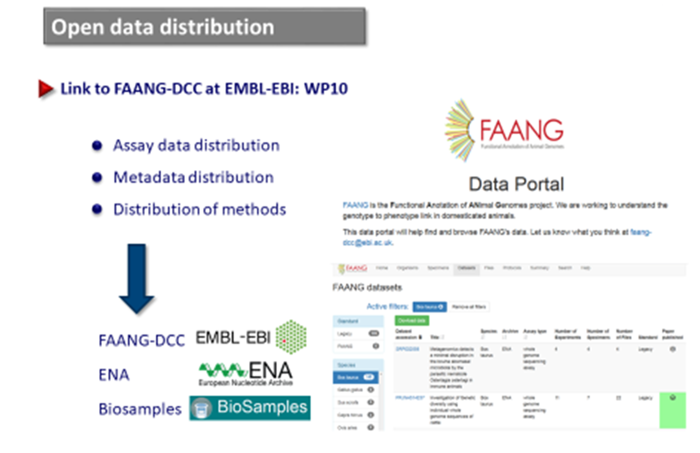 WP10 will provide open access to the research data produced by the BovReg consortium, applying FAIR principles. In particular, all the data, metadata and methods required to replicate our work will be easily available to the community. Much of this work will directly re-use and expand on existing infrastructure, in particular the FAANG DCC.